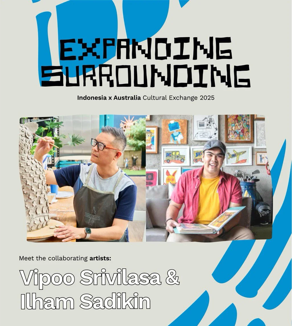 The project culminates in a Melbourne-based suite of exhibitions, artist and staff residencies, educational talks, and professional development workshops, creating rich opportunities for artists, staff, and audiences from both countries to engage and learn from each other, launching 18 October 2025. The artist residency at Jump Left project space will be undertaken by Adryan Adinugraha from Tab Space, who will travel to Melbourne with two staff members.