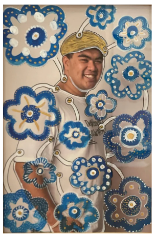 Blue and white symbolise cultural movement, whilst gold connects Thai traditions with Australia, representing evolving identity shaped by migration.
