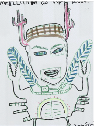 “Vipoo and Ilham decided they would explore the concept of superheroes through intimate, collaborative artmaking - creating small-scale drawings that would inspire sculptural works from each other. Vipoo planned to work on A4 sized paper, a similar scale that Ilham had used for their portrait sketches during their studio visit. The plan was for each artist to create superhero drawings, then swap these works to inspire small sculptures.”